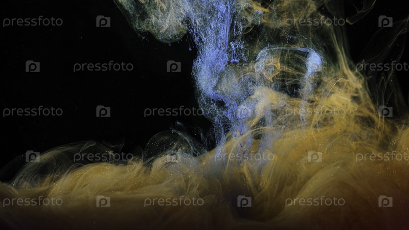 Закрытие потока цветных красок в воде. резервные кадры. макро красивые брызги цветной чернил в воде на чёрном фоне