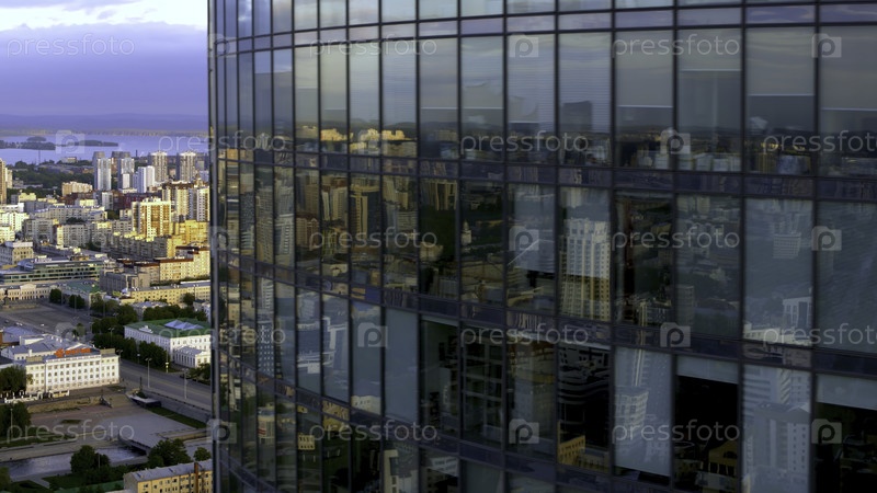 Потрясающий воздушный вид на исторический центр и город Екатеринбург летом. резервные кадры. закрывает стеклянный фасад Высоцкого небоскреба