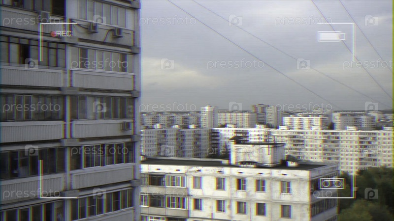 Видео высотных жилых зданий в спальной зоне на фоне серого облачного неба