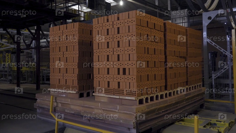 Кирпичная фабрика. Завод по производству строительного материала с готовым кирпичом, промышленное строительство. Производство кирпичей на фабрике. Рабочий процесс, крупный снимок. Кувшины кирпичей. Много HD-кирпичей