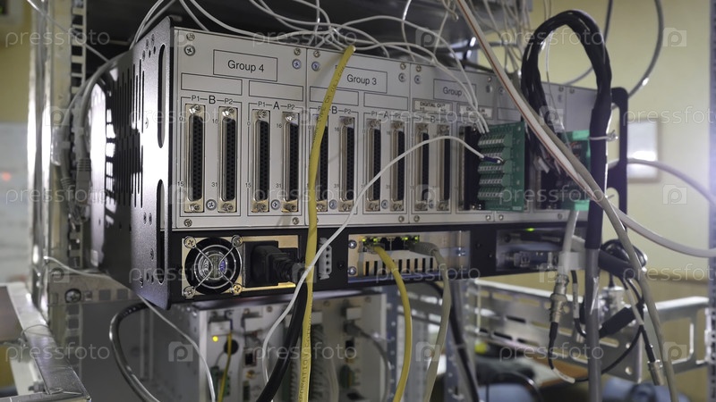 Сетевая панель, выключатель и кабель в центре обработки данных