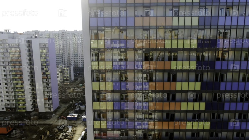 Вид сверху на окна роскошного жилого дома.Движение.Цветное многоквартирное здание
