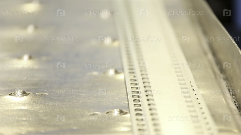 Резка отверстий перфорация штамповки металлических листов на промышленной CNC-машине. Близкий план координат CNC, проникающих в пресс, перфорирует металлолист. Автоматизация работы. Оборудование для охлаждения и вентиляции