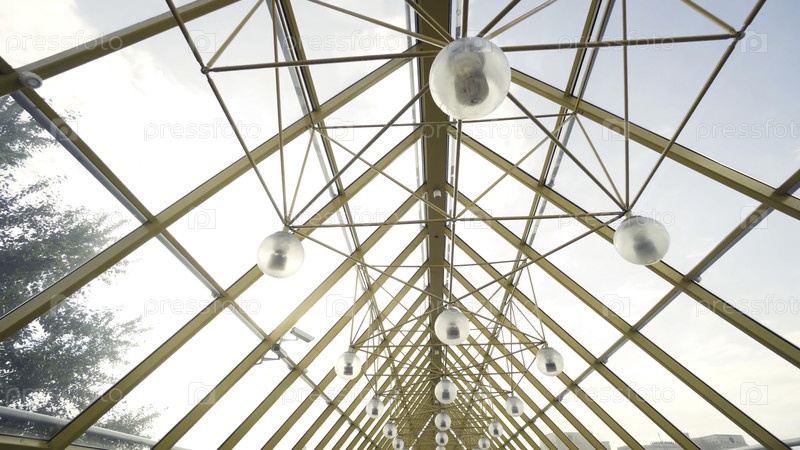 Красивый крытый мост с арками выполнен в современном архитектурном стиле. Яркая современная достопримечательность для фотосессий