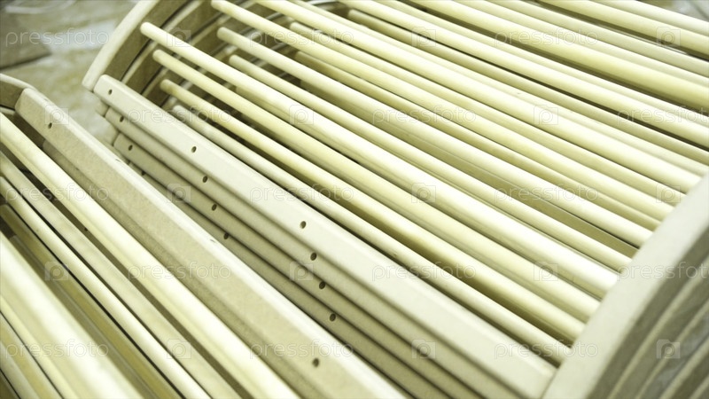Неоконченный деревянный стул в посудомоечном доме под крышкой. Фабрика мебели. Изготовление кресел из натурального дерева. Производство стульев. Производство мебели