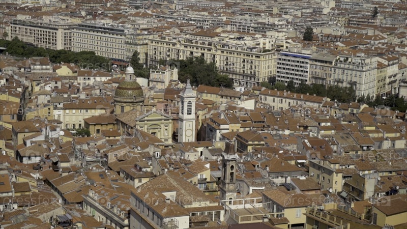 Вид на старый европейский город с оранжевыми крышами. Продолжайте. Близкое и компактное расположение жилых зданий с красными черепичными крышами в европейском городе