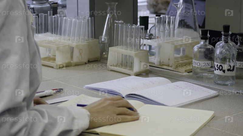 Молодая врач записывает, женщина-ученый делает заметки на заднем плане - это трубы