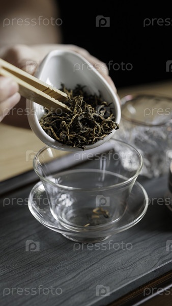 Участие в красивой чайной церемонии с участием свободных листьев, изысканные блюда и богатый аромат