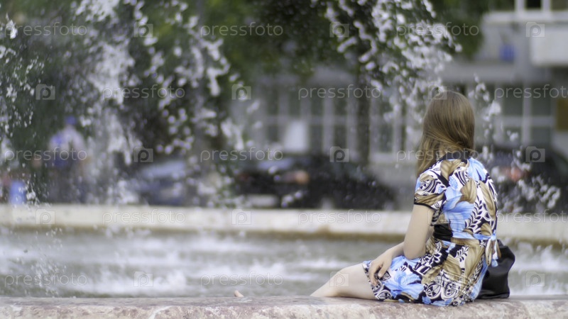 Девушка, сидящая на заднем плане - это текущий фонтан