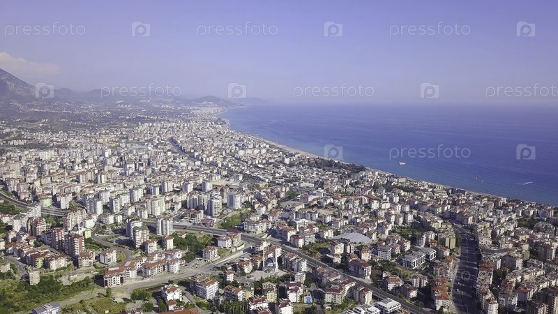 Панорама города на горном побережье моря на фоне красивого неба Райский курорт с тропическим климатом в море