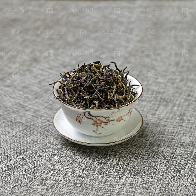 Сушеные листья черного чая аккуратно помещаются в красивую традиционную китайскую пивоварню