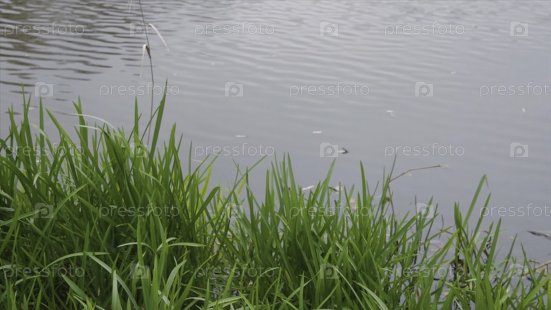 зеленая трава и серые камни на реке солнечный день на спокойной реке летом руши на озере HD