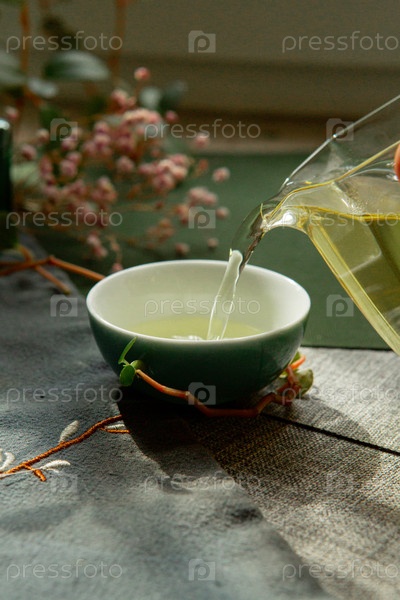 Почувствуйте спокойный ритуал наливания чая, усиленный естественным мягким солнечным светом