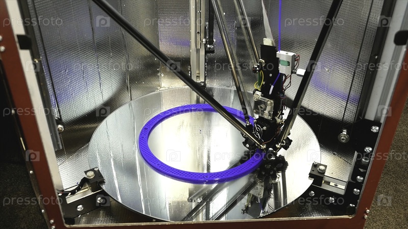 3D принтер яркая модель крупного плана. СМИ. Автоматический 3D-принтер выполняет пластическое моделирование в лаборатории. Современные аддитивные технологии, промышленная революция