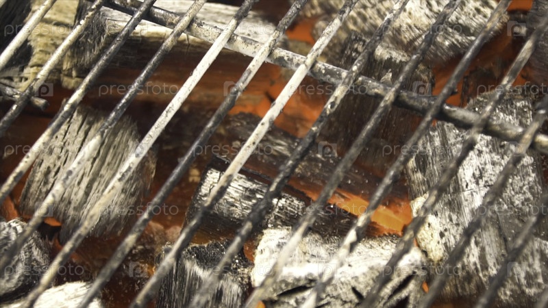 Светящийся горячий уголь на BBQ Grill Pit с пламенем Угольное горение закрывается