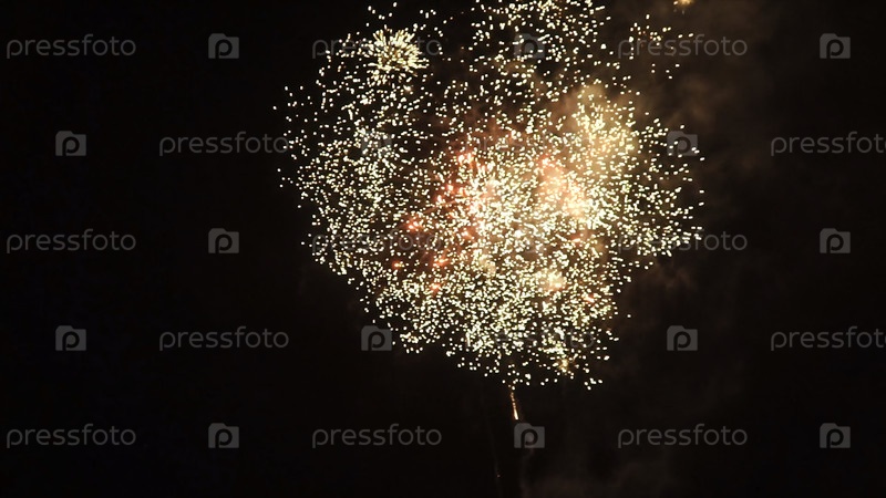 Красивые красочные праздничные фейерверки в ночном небе. Клип. Фейерверк в ночном небе. Концепция праздника