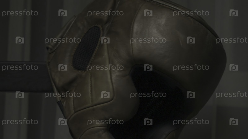 Защитный шлем на голове во время тренировки защищает голову от ударов