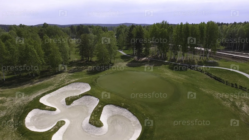 Профессиональные игроки на зеленом поле для гольфа