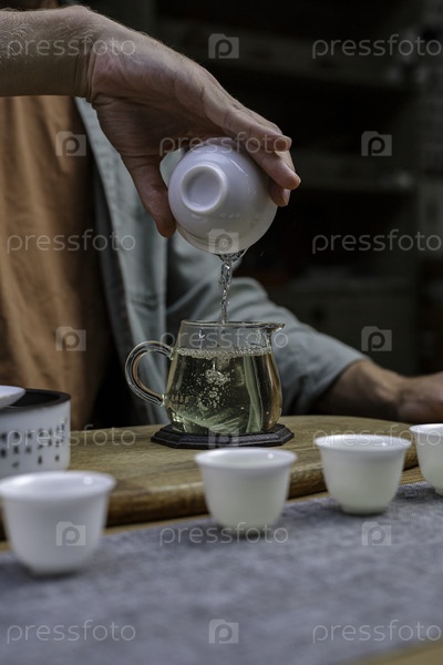 Искусство ремесленного чая в мирной и спокойной природной обстановке и атмосфере