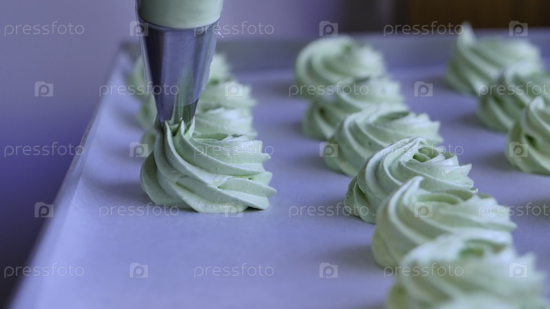 Сжать сливочную начинку на зеленый кексы