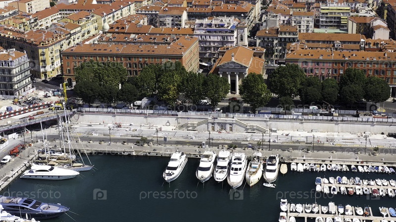 Потрясающий воздушный городской пейзаж со Старым городом и сардинским портом с лодками в Средиземном море до Кальяри, острова Южная Сардиния в Италии летом