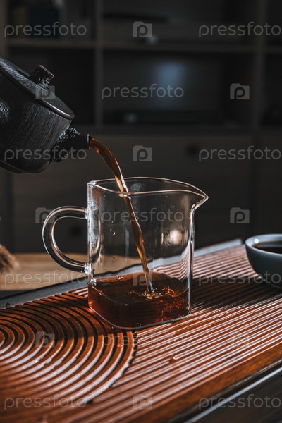Спокойный момент захватывает чай, залитый в стеклянную кружку, демонстрируя богатые текстуры и приглашающий аромат