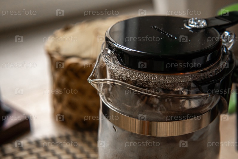 Элегантный французский пресс идеально подходит для приготовления кофе в современном кухонном пространстве