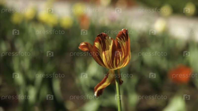Красные тюльпаны в солнечный день.Запасная запись.В парке растет красивый тюльпан