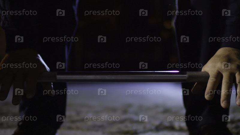 Близость мускулистого человека, выполняющего мертвые упражнения на спортивном поле - это фитнес, концепция здорового образа жизни. кроссфит. руки пауэрлифтера. дэдлифт Барбелла для соревнований