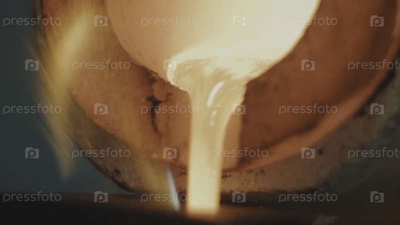 Расплавленное золото наливается в формы стержней. расплавленное золото заливается в формы стержней. металл или золотой отливки разливаются в формы на литейной фабрике