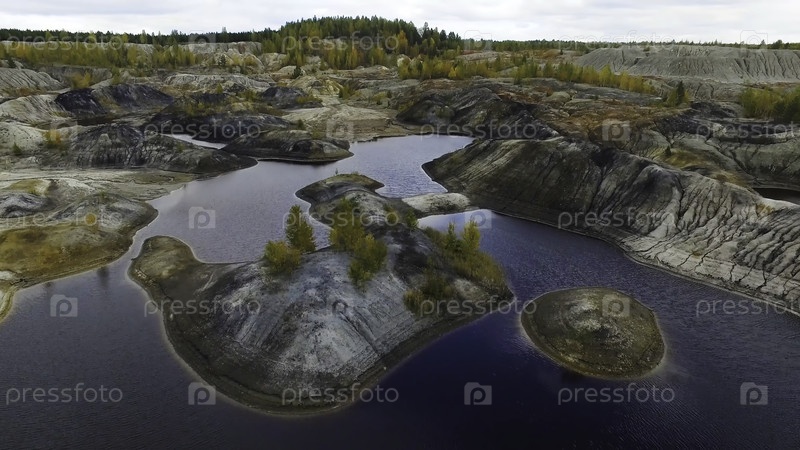 Маленькое озеро, вид сверху. кадры. маленькое озеро в горах. панорамный вид на скалистые вершины гор вокруг озера