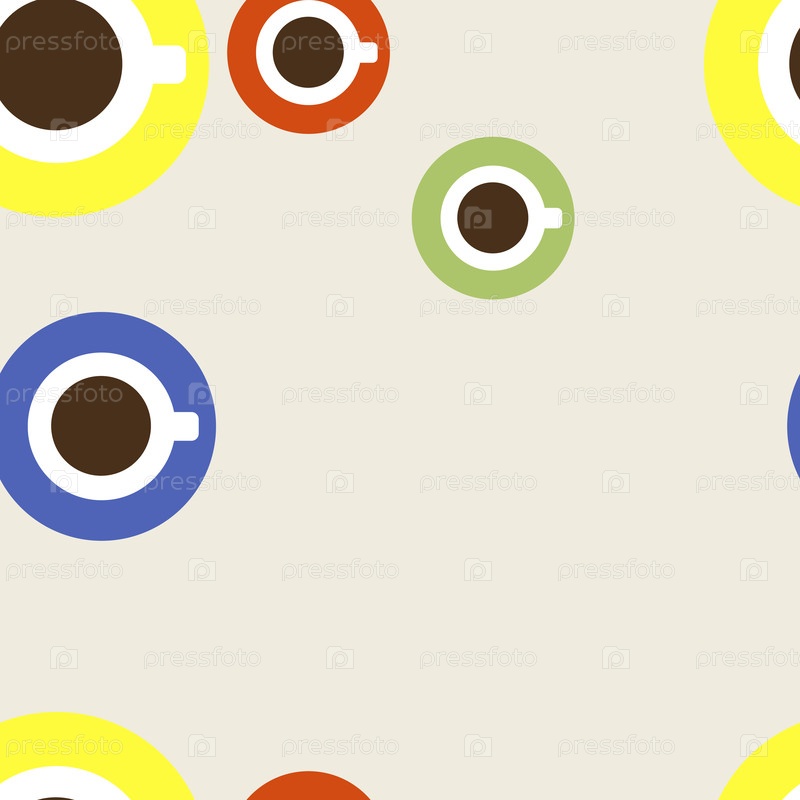 Бесшовный векторный рисунок с цветными чашками для кофе