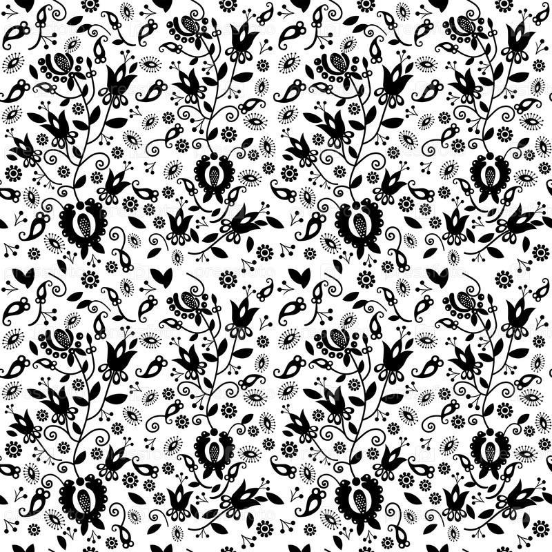 Черно-белый бесшовный векторный рисунок в народном стиле (Словакия)
