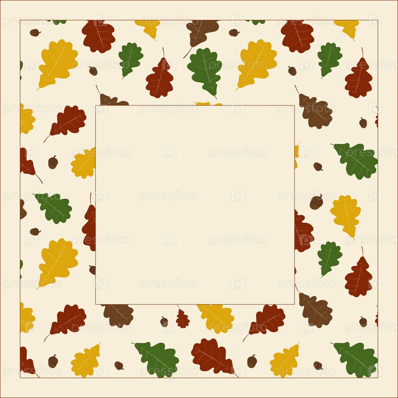 Векторная рама с бесшовным узором с яркими осенними листьями дуба и желудицами