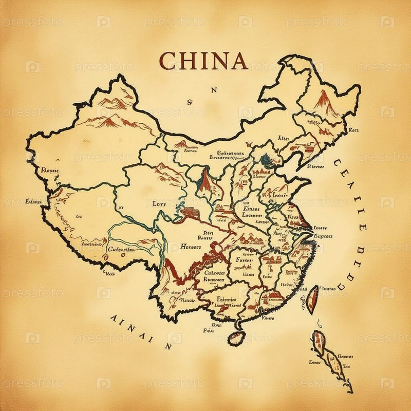 Винтажная карта Китая Исидора на пергаменте