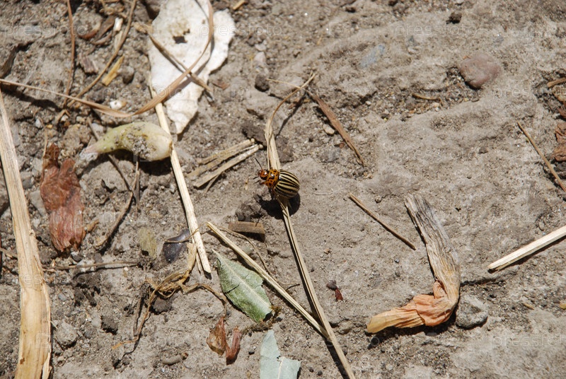 Колорадский картофельный жук ползет по земле