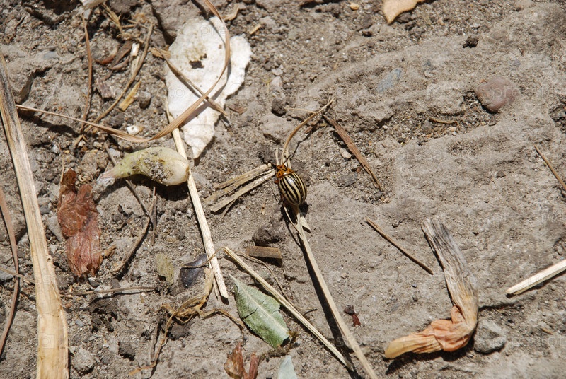 Колорадский картофельный жук ползет по земле