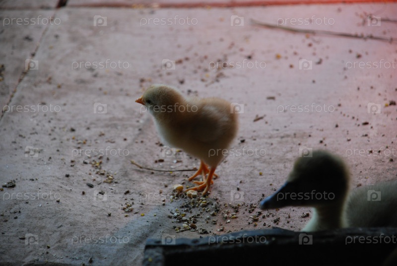 Маленькие цыплятки в курятнике