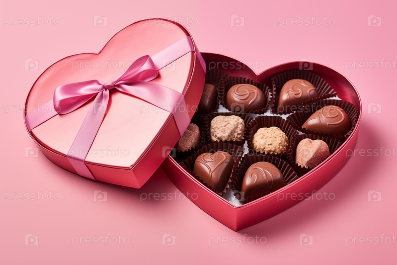 Ассортимент шоколада на День святого Валентина в коробке в форме сердца