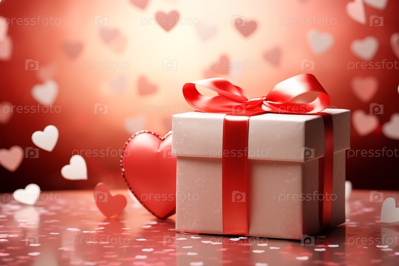 Подарочная красная коробка с розовой лентой в сердце