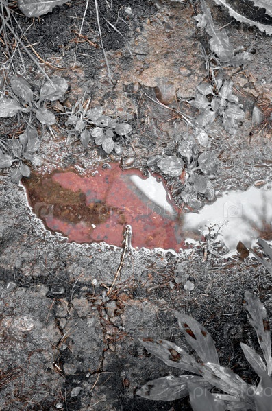 Отражение красного зонтика в луже