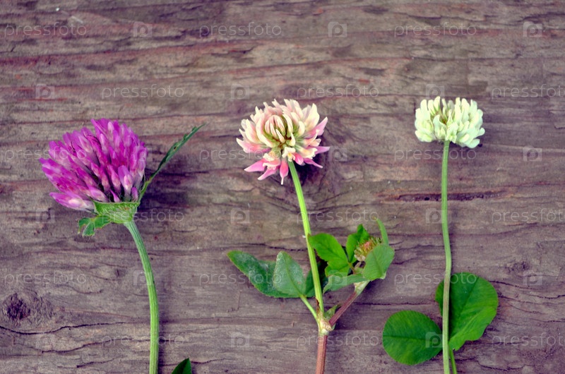 Различные виды клевера на деревянном фоне