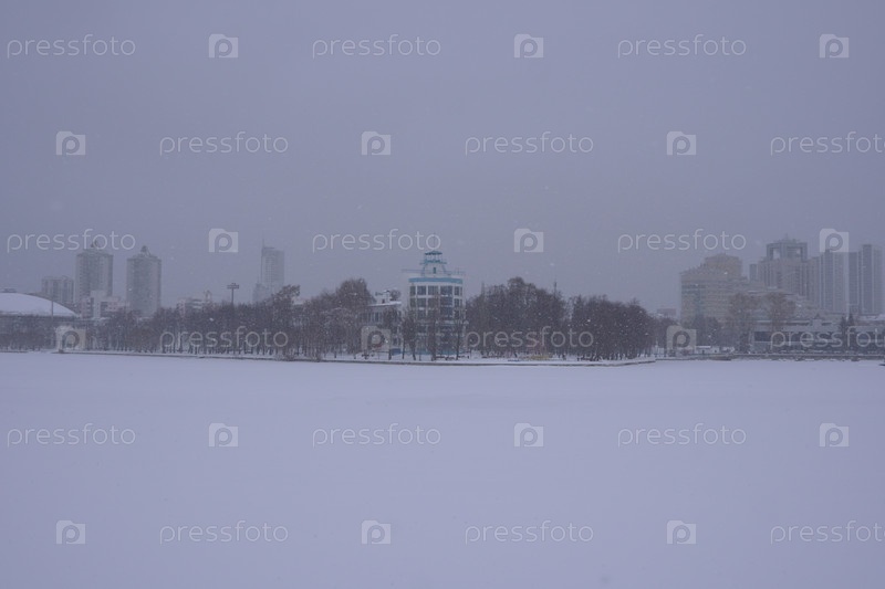 Зимний городской пейзаж снежного Екатеринбурга