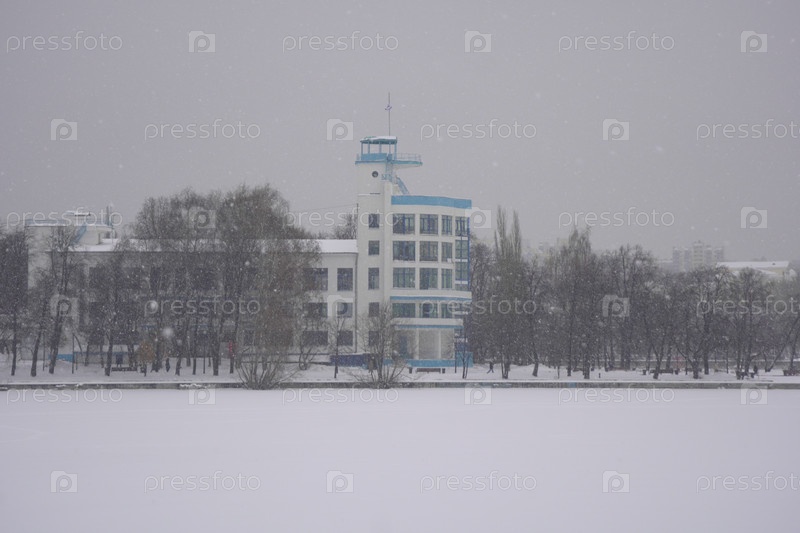 Зимний городской пейзаж снежного Екатеринбурга