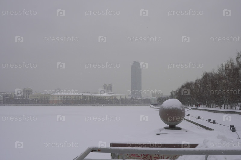 Зимний городской пейзаж снежного Екатеринбурга