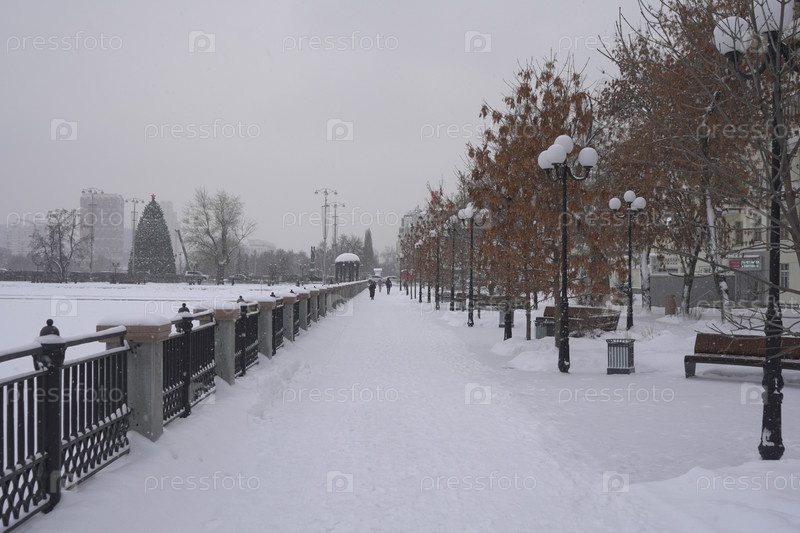 Зимний городской пейзаж снежного Екатеринбурга