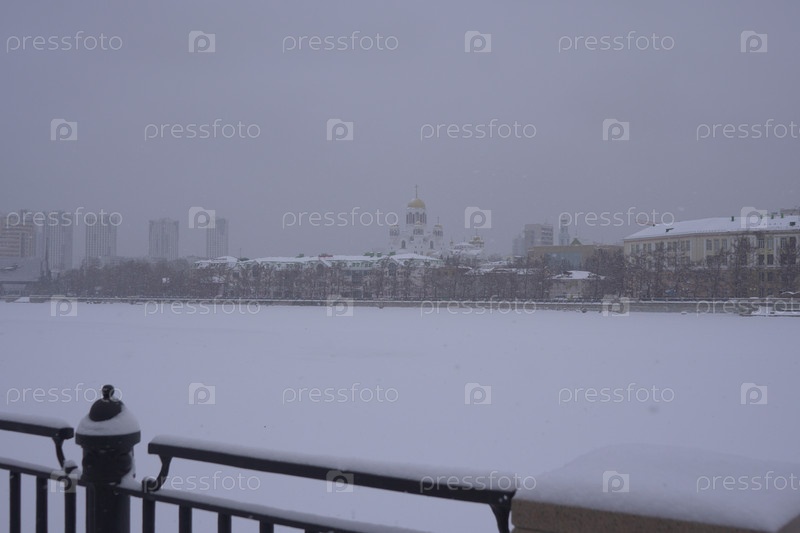 Зимний городской пейзаж снежного Екатеринбурга