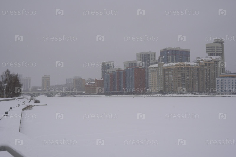 Зимний городской пейзаж снежного Екатеринбурга