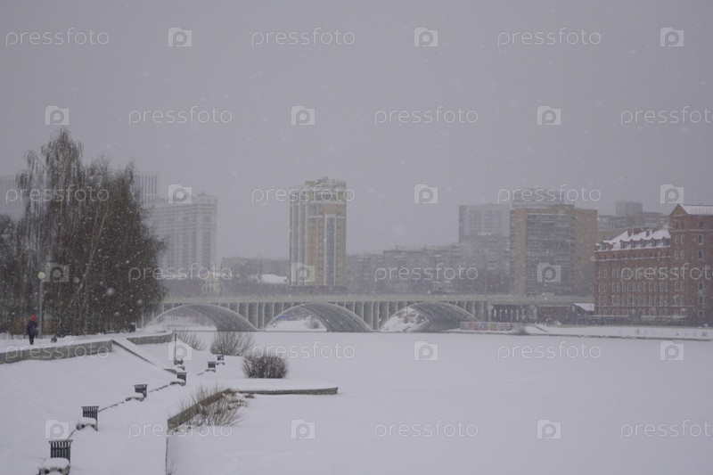 Зимний городской пейзаж снежного Екатеринбурга