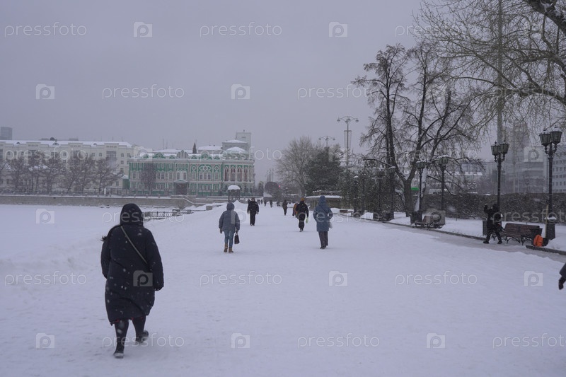 Зимний городской пейзаж снежного Екатеринбурга